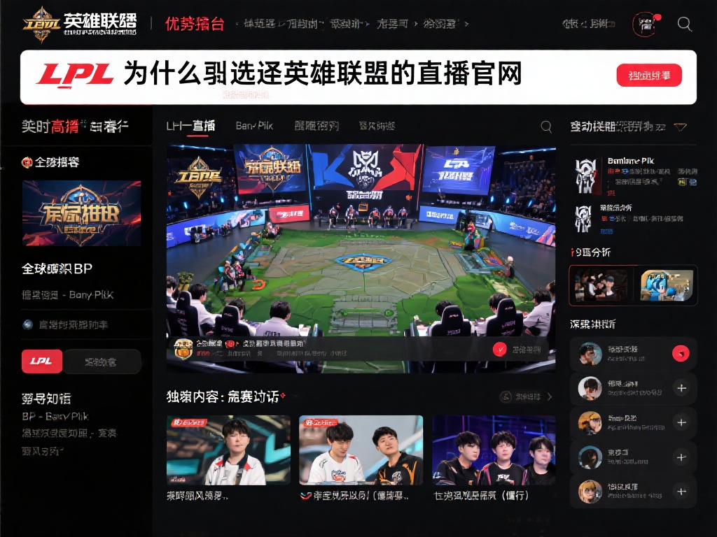 在众多电竞直播平台中,英雄联盟比赛直播官网凭借其独特优势脱颖而出。首先,平台提供实时高清直播,无论是LPL、LCK还是全球总决赛,你都能第一时间观看到最激烈的对决。其次,这里不仅仅是直播,更是电竞知识的宝库。独家内容如赛后采访、战术复盘和选手幕后故事,让你从普通观众晋升为“懂行”的电竞迷。比如,在最近的LPL春季赛中,平台独家披露了一支战队如何通过精密的BP(Ban/Pick)策略逆风翻盘,这种深度分析让粉丝直呼过瘾。
